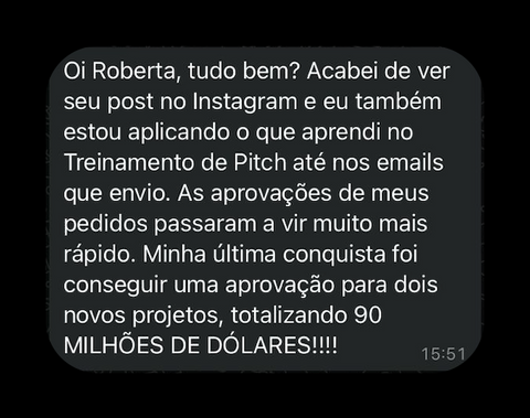 Tive a oportunidade de fazer o Treinamento de Pitch da Roberta em 2020.